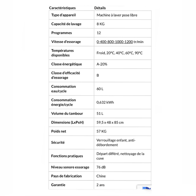 Grâce à sa classe énergétique A-20%, vous réalisez des économies d’énergie significatives. Son design moderne et son tableau de commande intuitif en font un indispensable pour votre foyer.