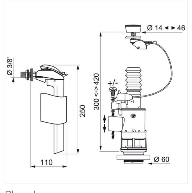 - Hauteur du réservoir : 300 à 420 mm