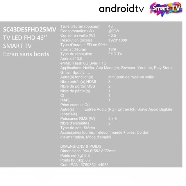 TV LED 43' 105,5CM FHD STV SMART TV NTFX