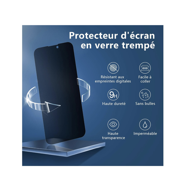 Verre Trempé Anti-Espion IPhone, X-XS-XR-11-12-12Pro-13-14-14ProMax-15-15Pro