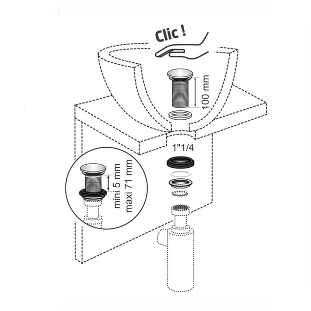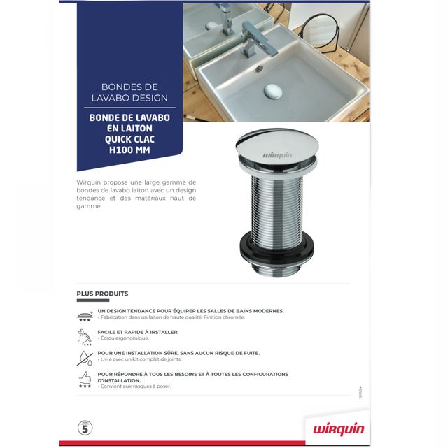 Les bondes Quick-clac sont 100% en laiton de la plus haute qualité (Grade 9 - Résistance au brouillard salin neutre (NSS) : 200 h). Tous les modèles quick-clac sont testés à plus de 50 000 cycles d'ouverture fermeture.